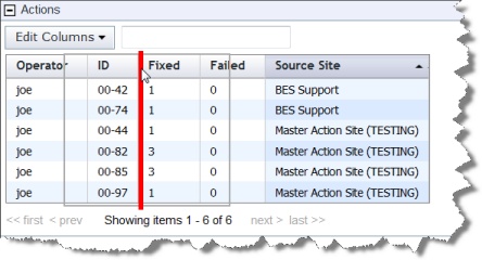 To change the order of any column in your report, simply click and drag the column to where you want it. A red line indicates legitimate targets as you drag the column.