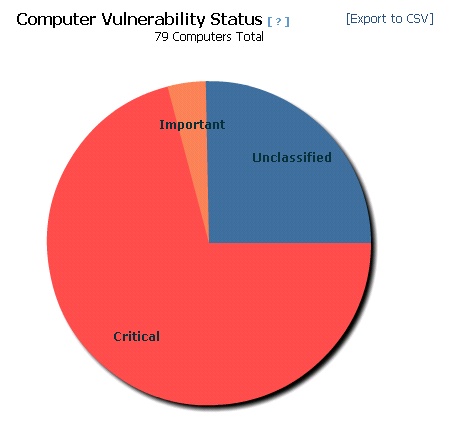 The Computer Vulnerability Status pie chart groups computers according to their most severe vulnerability.