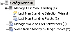 Configuration From the Configuration node of the Power Management navigation tree, you can manage Last Man Standing Fixlets, Wake on LAN Forwarders, and Wake from Standby by Magic Packet options. The sections below highlight these features.