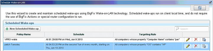You can create and maintain scheduled wake-ups using the Schedule Wake-on-LAN Wizard. Scheduled wake-ups run on client local time and do not require the use of Endpoint Manager Actions or special router configurations to run.