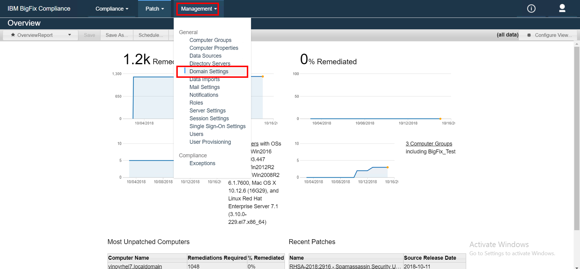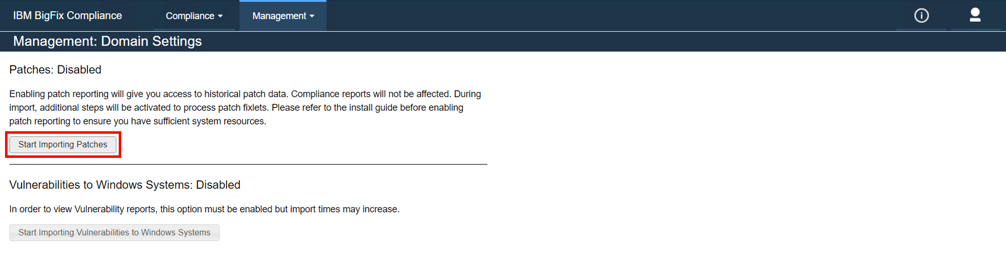 If the patch reporting is disabled, the application stops importing the patch data, but previously imported data is retained. If you enable the patch reporting again, legacy data can be accessed from the reporting menu.