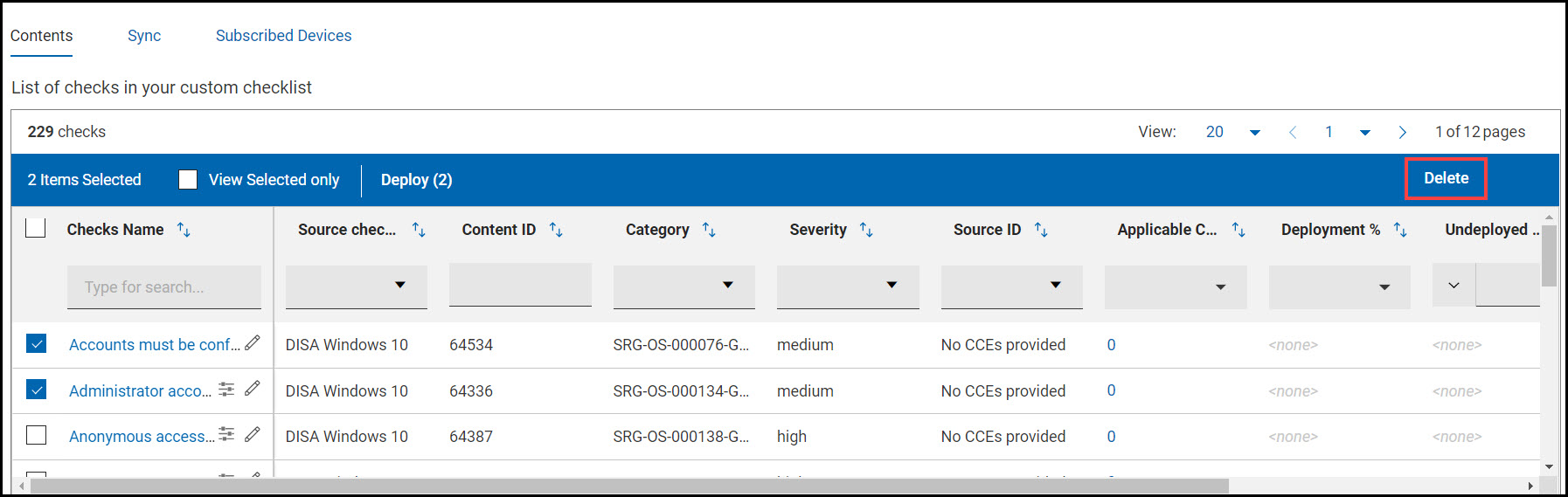 Understand how to delete a custom copy of a check or the checks which are created and added to the custom checklist. You can delete multiple custom checks or an individual custom check from the custom checklist details page.