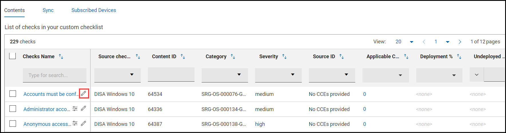 Result: You are navigated to the custom checklist details page when the check is successfully deleted.