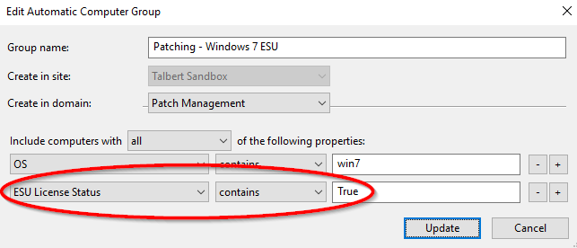 BigFix で ESU パッチ適用グループを作成します。