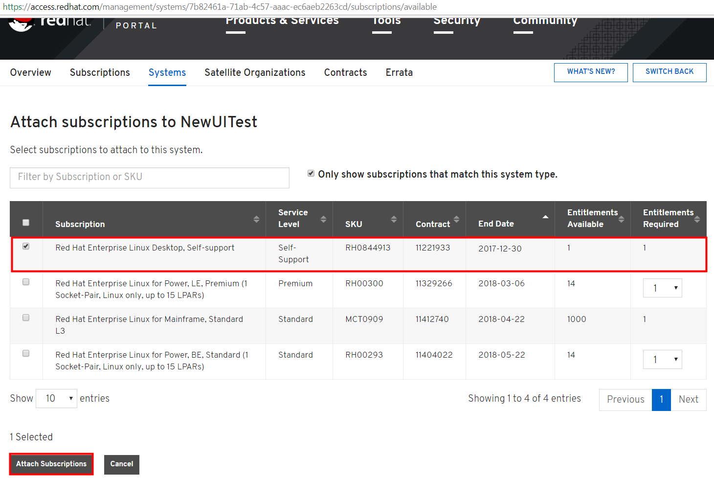 作成したシステムに付加するサブスクリプションを選択し、「サブスクリプションの付加 (Attach Subscriptions)」をクリックします。