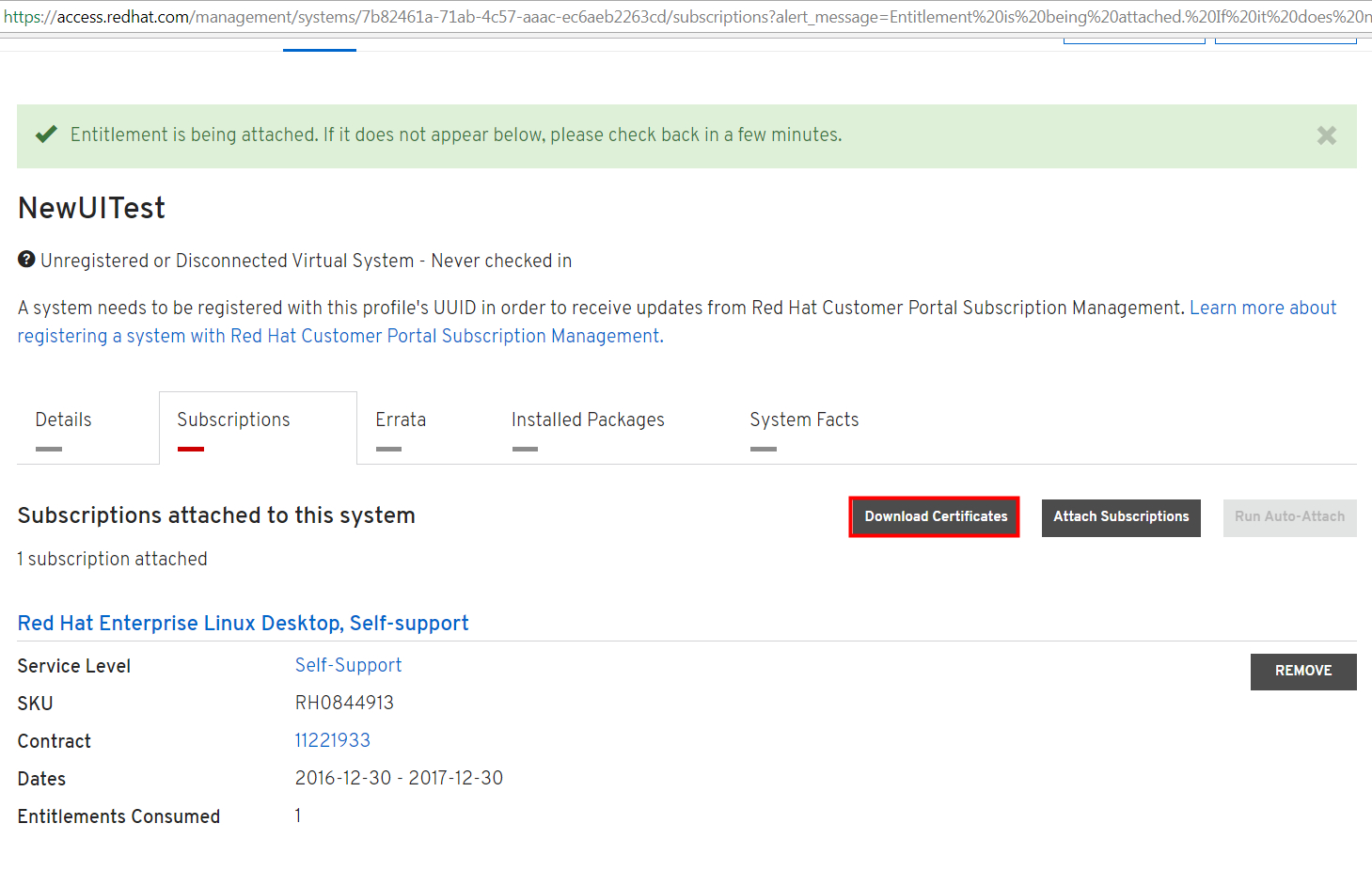 ダウンロードする必要のある証明書セットが少なくとも 1 つできます。システムを少なくとも 1 つ登録し、自分のマシンに対応するサブスクリプション (資格) を付加するだけです。