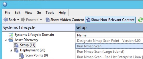 Asset Discovery ナビゲーション・ツリーの「設定」ノードを選択して、「Run Nmap Scan」で使用可能なすべてのタスクを見つけます。