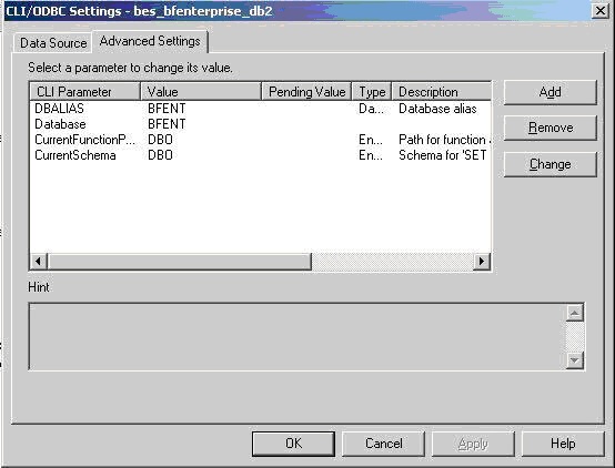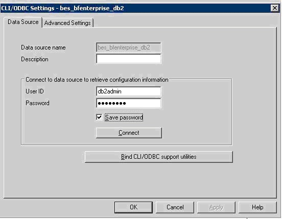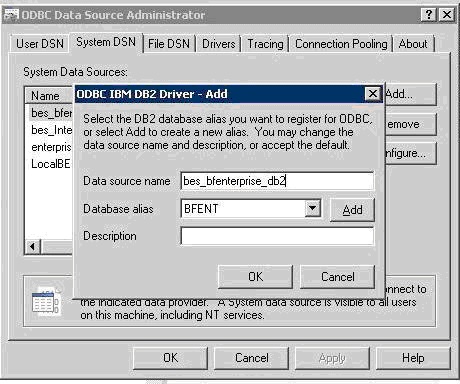 bes_bfenterprise_db2を作成します。64 ビット・バージョンの Windows オペレーティング・システム (Windows 2008 R2 など) には、以下のバージョンの ODBC データ ソース アドミニストレーター・ツール (Odbcad32.exe) が含まれています。- 32 ビット・バージョンの Odbcad32.exe ファイルは、