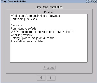 これで、Tiny Core Linux がインストールされました。