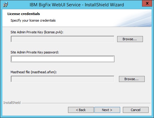 license.pvk ファイルの場所と、対応するパスワードを入力します。マストヘッド・ファイルの場所を指定します。「次へ」をクリックし、次のステップをスキップし、ステップ 5 に進みます。