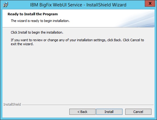 - 「インストール」をクリックし、BigFix WebUI のインストールを続行します。