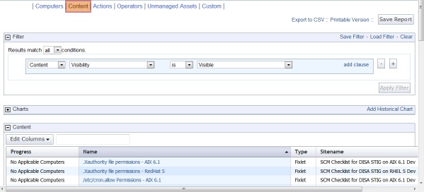 BigFix のコンテンツは、Fixlet メッセージ、タスク、分析、およびベースラインから構成されています。必要な場合には、これらのカテゴリーを分離するフィルターを作成できます。例えば、「コンテンツ・タイプがFixlet」など。