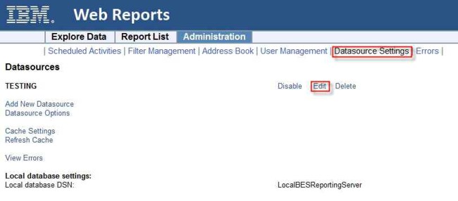- 「管理」>「データ・ソース設定」>「編集」を選択します。