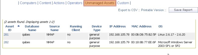 「非管理資産」タブをクリックして、ネットワーク内の非管理資産を表示します。