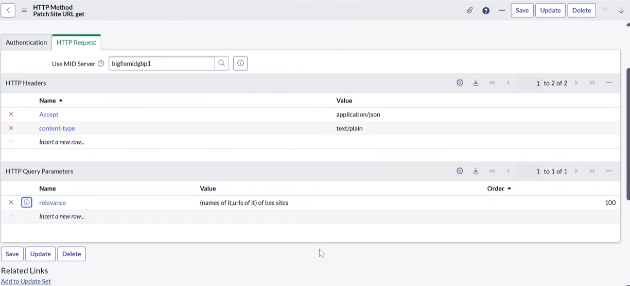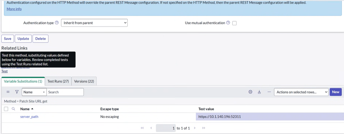 - Click on any method (e.g., Patch Site URL get).