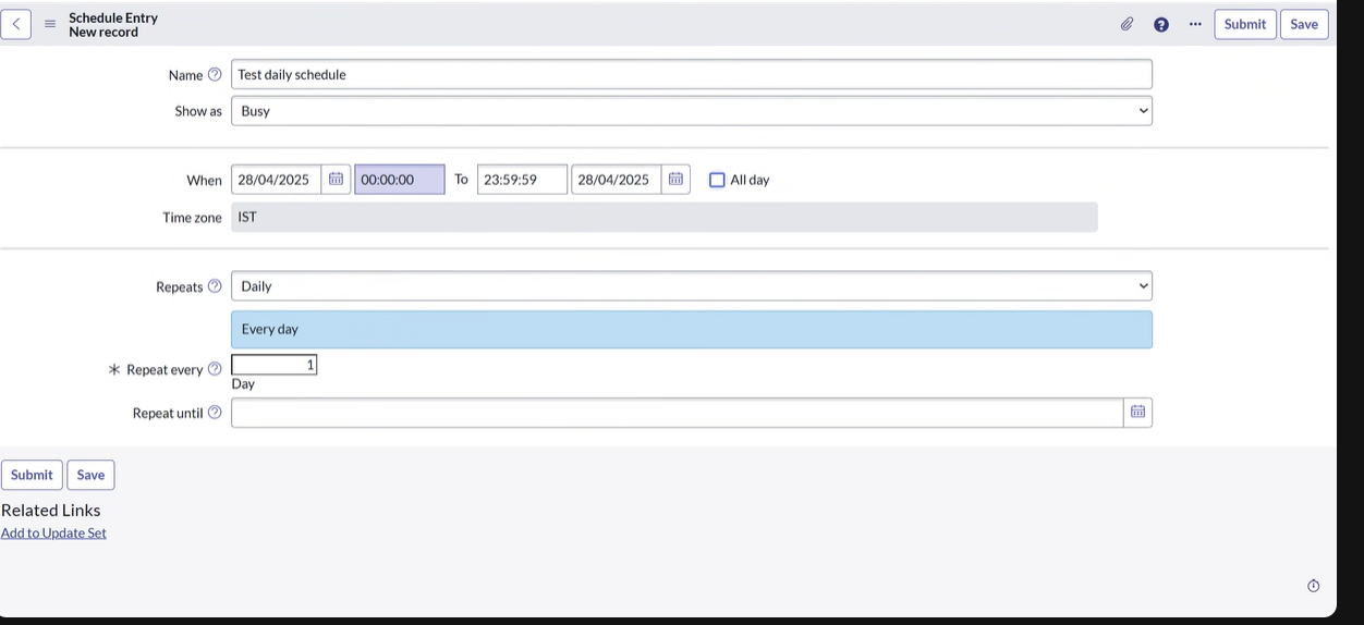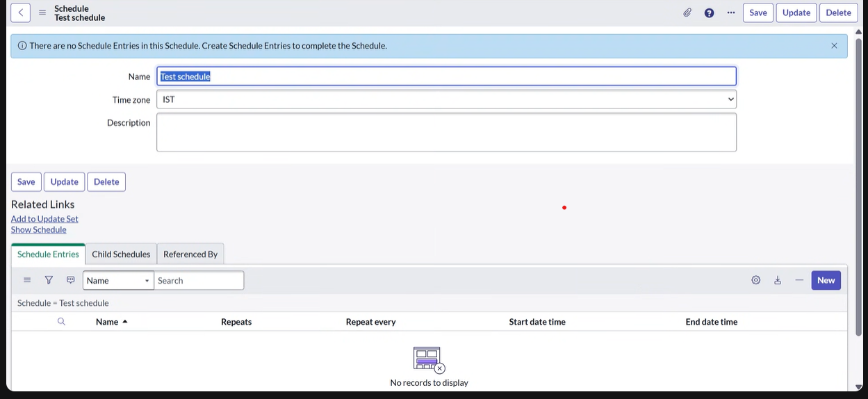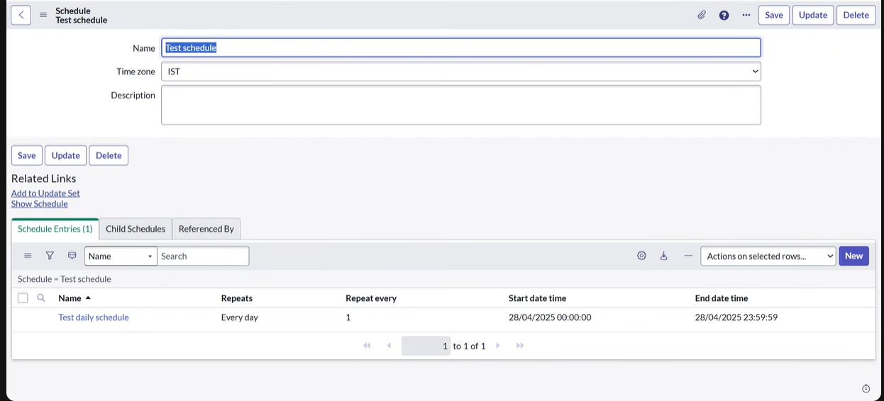 right corner under Schedule Entries.