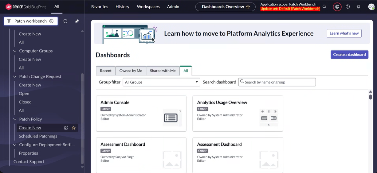 Patch WorkBench, and click Create New in the Patch Policy option.