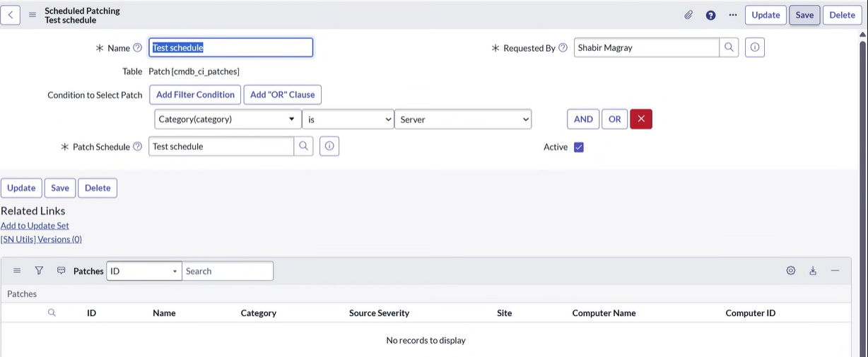 - Select the previously created schedule in the Patch Schedule field.