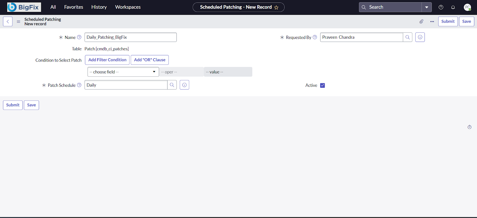 This topic provides step-by-step instructions for scheduling patching activities in ServiceNow using the Patch WorkBench. It covers logging in, creating a new patching schedule, completing required fields, and selecting patches for deployment.