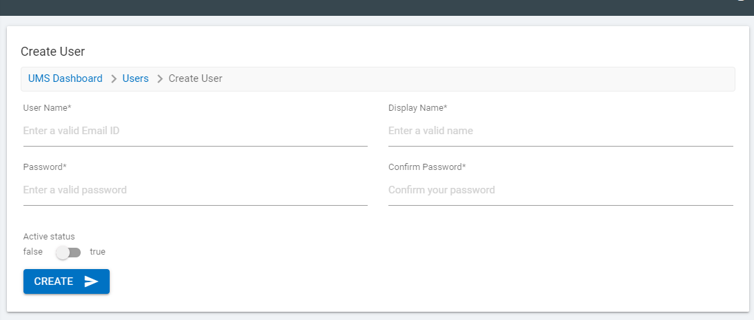 This section can be used to add a new individual user. If you want to create multiple users and want only a subset to be active, you can do that by changing the active status while creating the users.
