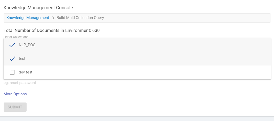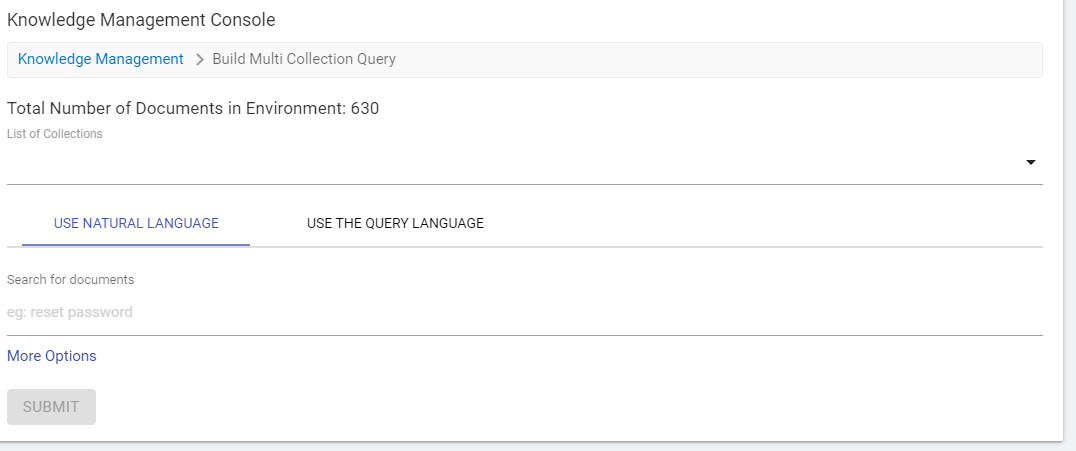- A console appears that allows the user to choose the list of collection from the dropdown for which query can be asked.