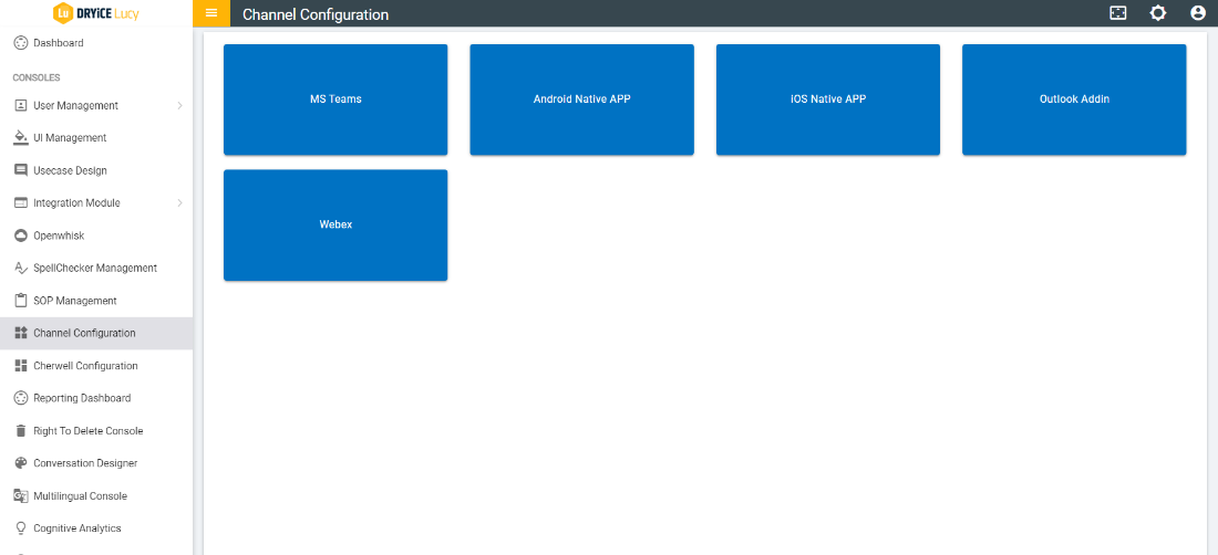 - On the Cognitive Console home page, click the Channel Configuration module.