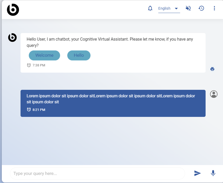 - Enable or Disable Notification, Send Image, Chat History, Switching to another Theme, Mic.