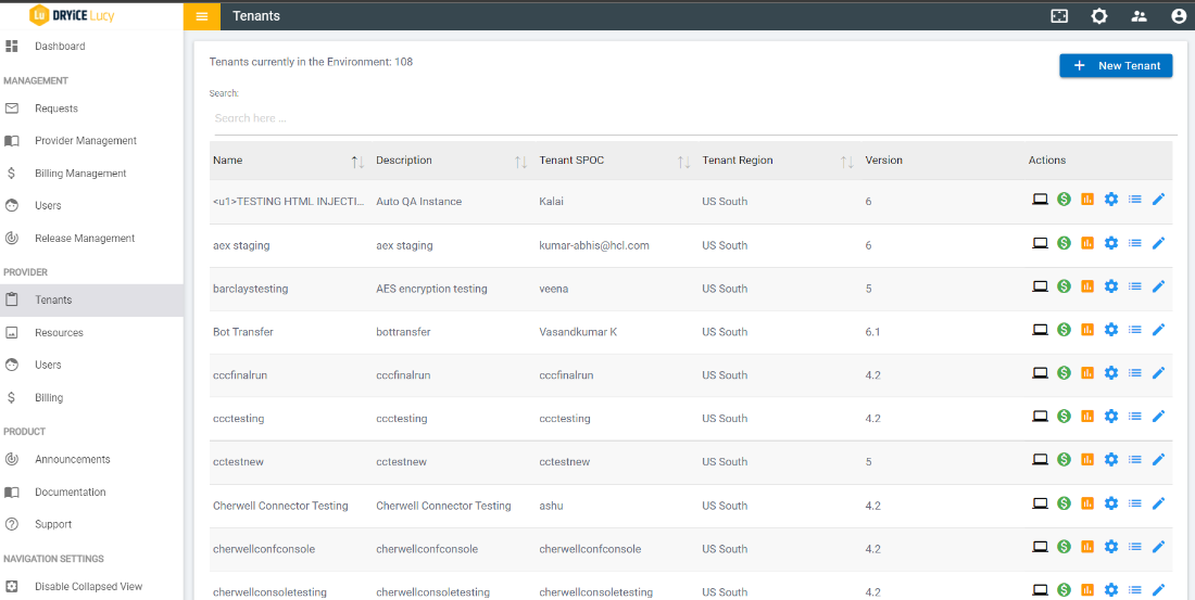 - Log into Global admin console and navigate to Tenants page under Provider tab.