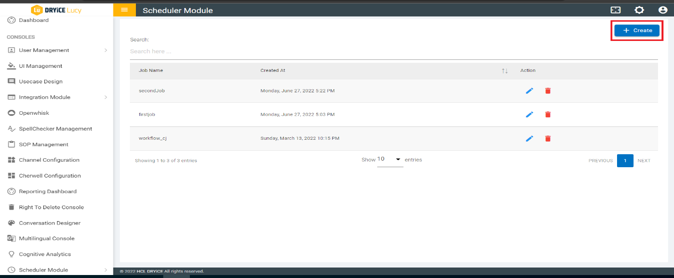 - In the Scheduler page, click the Create button on the top right of the screen.