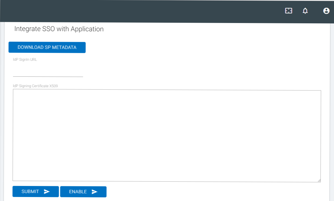 - Click SUBMIT. The SSO is not yet enabled but is only saved for usage.