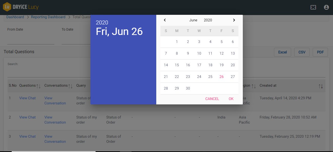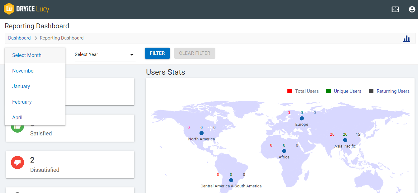 The detailed view of reporting dashboard can further be filtered on the basis of dates along with month and year.