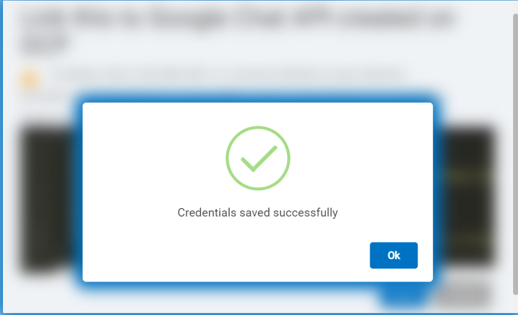 - Click on the gChat button to configure the gChat channel and you can connect any of your gChat bot to run BigFix AEX use cases. Click on Save and once it is done your bot is configured for your selected tenant and you will be able to use BigFix AEX over the same.