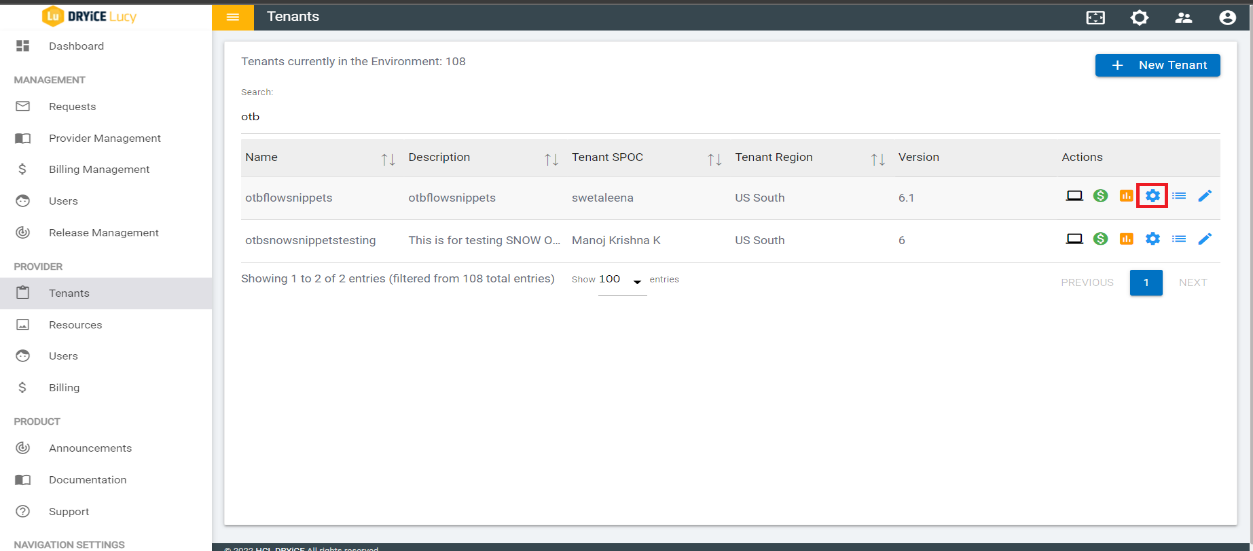 - Log into Global admin and navigate to Tenants page under Provider tab.