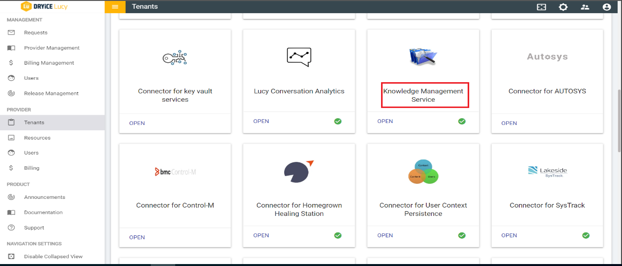 Knowledge Management Console manages different knowledge-based repository services. Currently, we have the Watson discovery service as its knowledge repository. It is a cognitive search and content analytics engine that you can add to applications to identify patterns, trends, and actionable insights to drive better decision-making.
