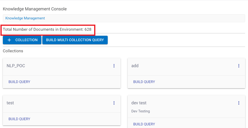 Total numbers of documents in the environment show the total number of documents present in all the collections.
