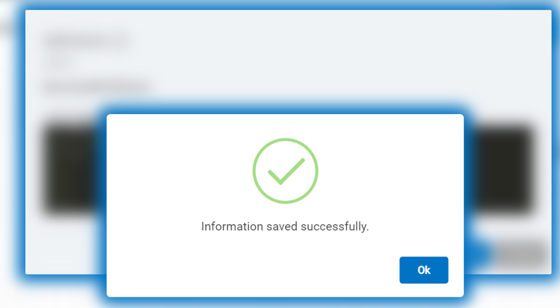 - After filling the details, click on the Save button and the following confirmation message appears: