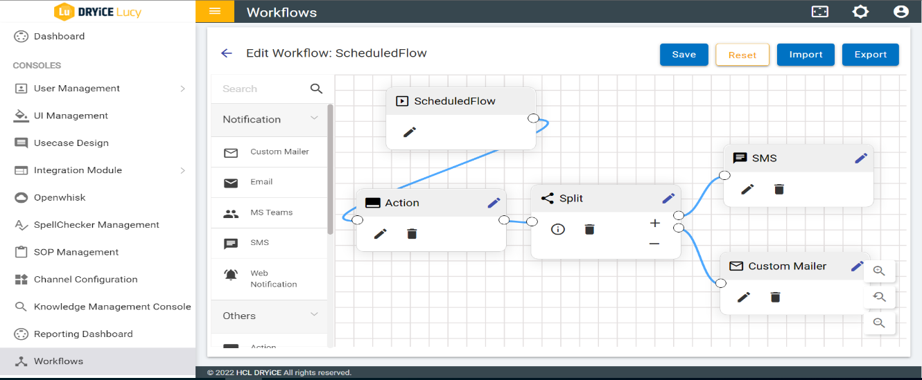 - Split Node: Split node allows to connect with more than two or maximum 5 outputs.
