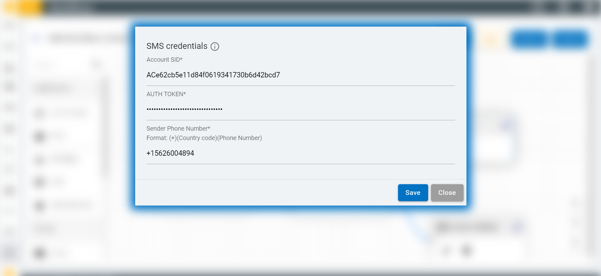 To send SMS, you must have an account in Twilio. Twilio Account SID, Auth Token and Twilio phone number is required.