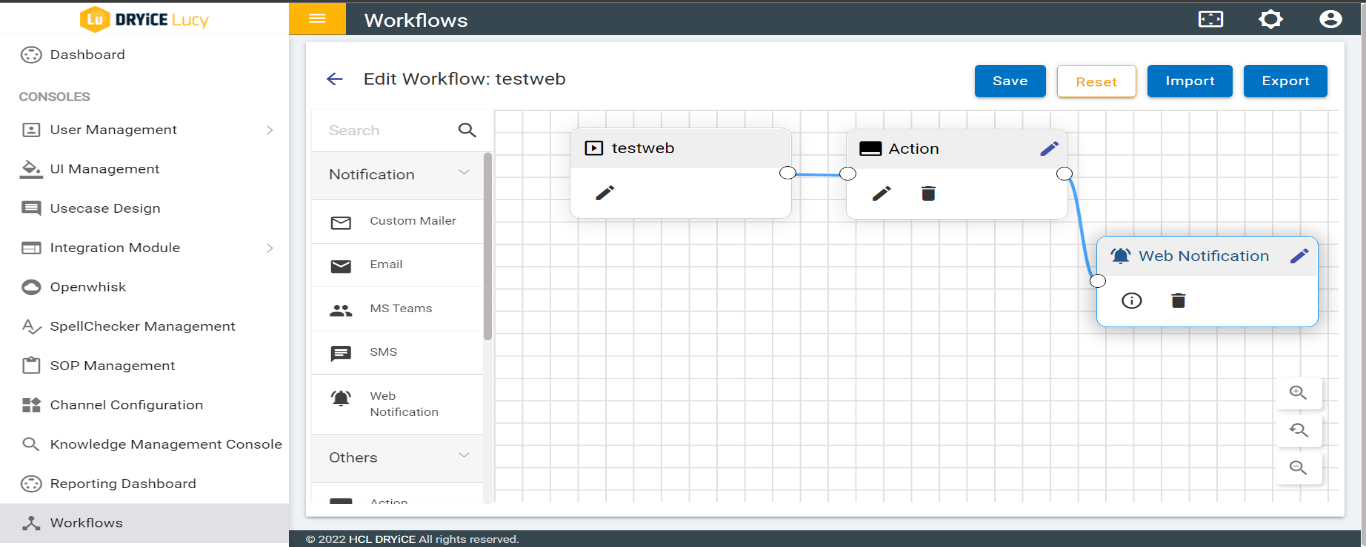 - Web Notification Node: Using this ngode, user can follow the status of the execution of the flow. User can see the status in the chat page.