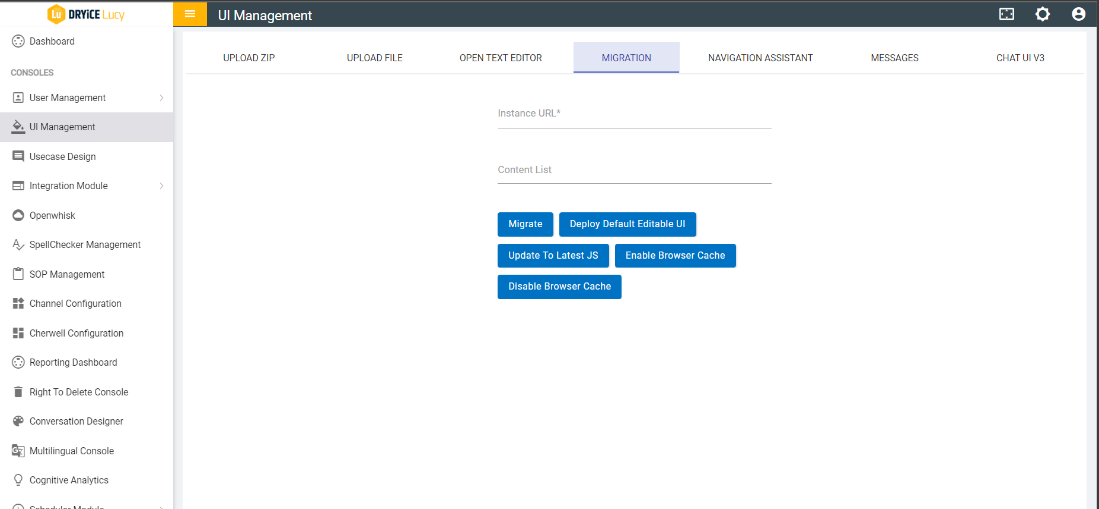 If the requirement is to simply migrate to a standard set of UI, then click the Migrate Standard UI. This should take some time to deploy the new UI. When done, you should be able to see all the assets required to view the UI. It is also to logout and login back once to check the UI load from the asset storage.