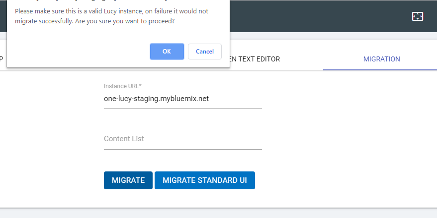 - You will get a warning to make sure you have correctly entered the source instance URL: