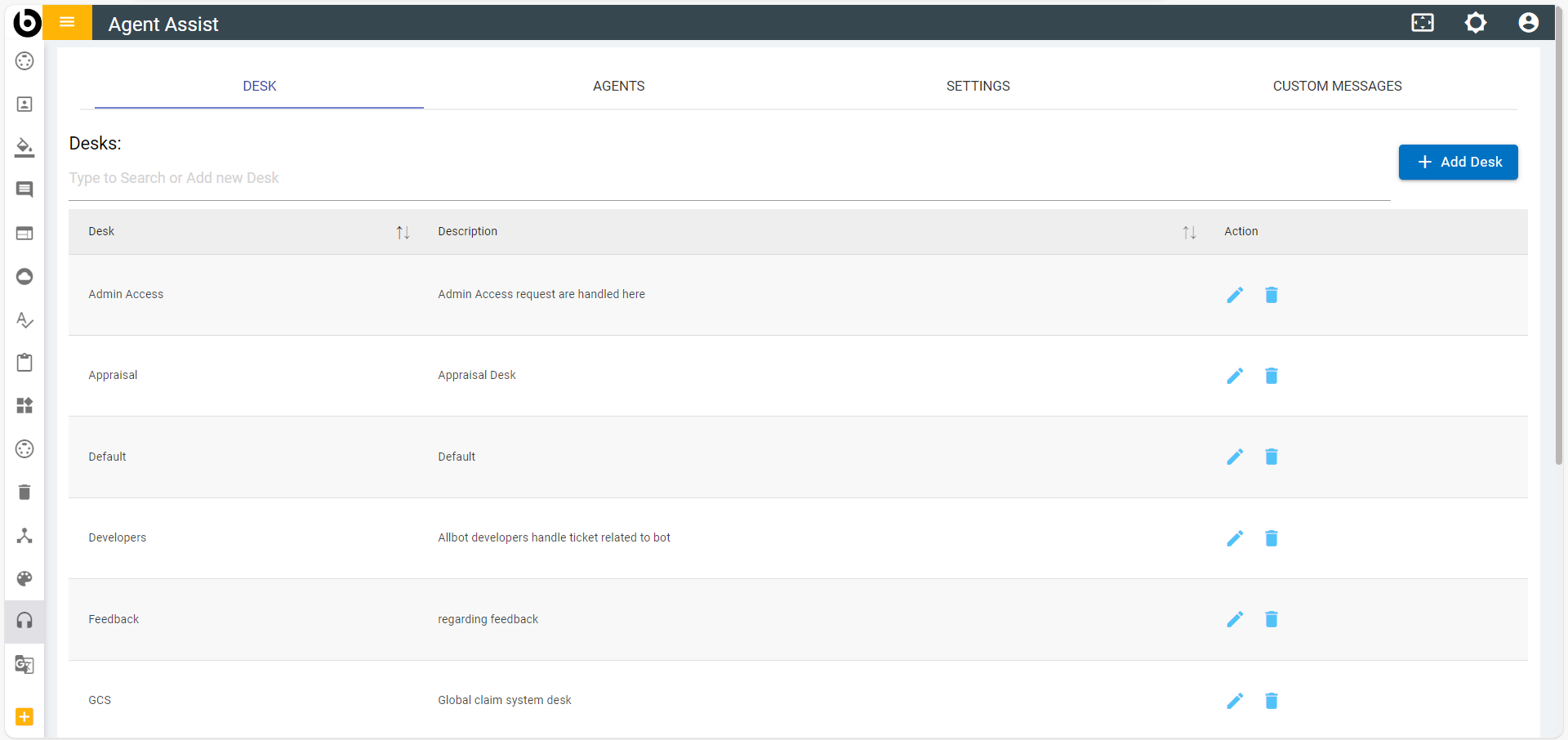 - On selecting the "Agent Assist" card from the Cognitive Console, if the user is logged in as an admin, he/she lands up to the console below: