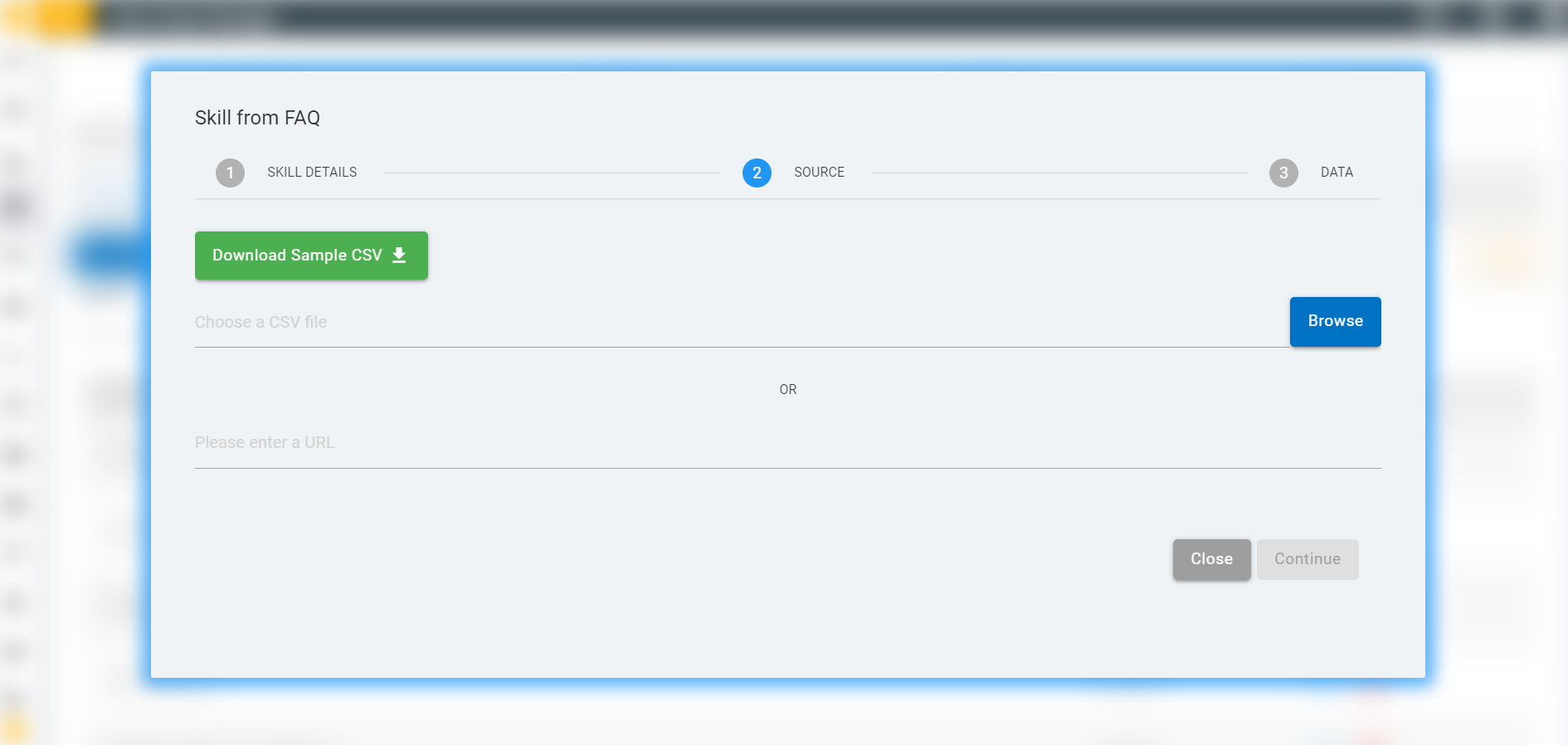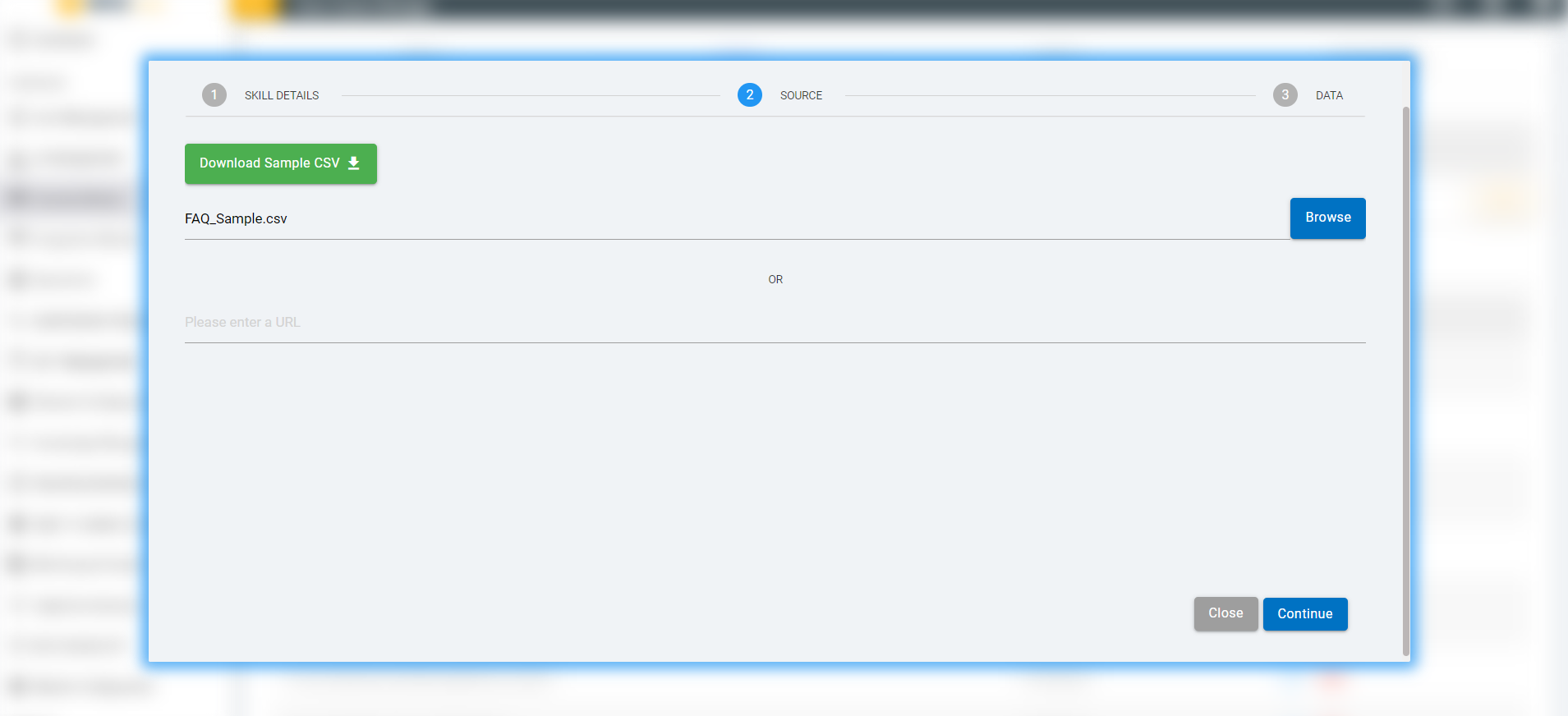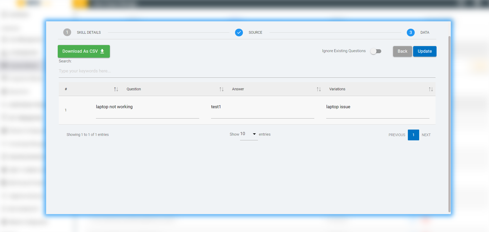 - Click on “Update Skill from FAQ” button. Then a screen will pop-up.