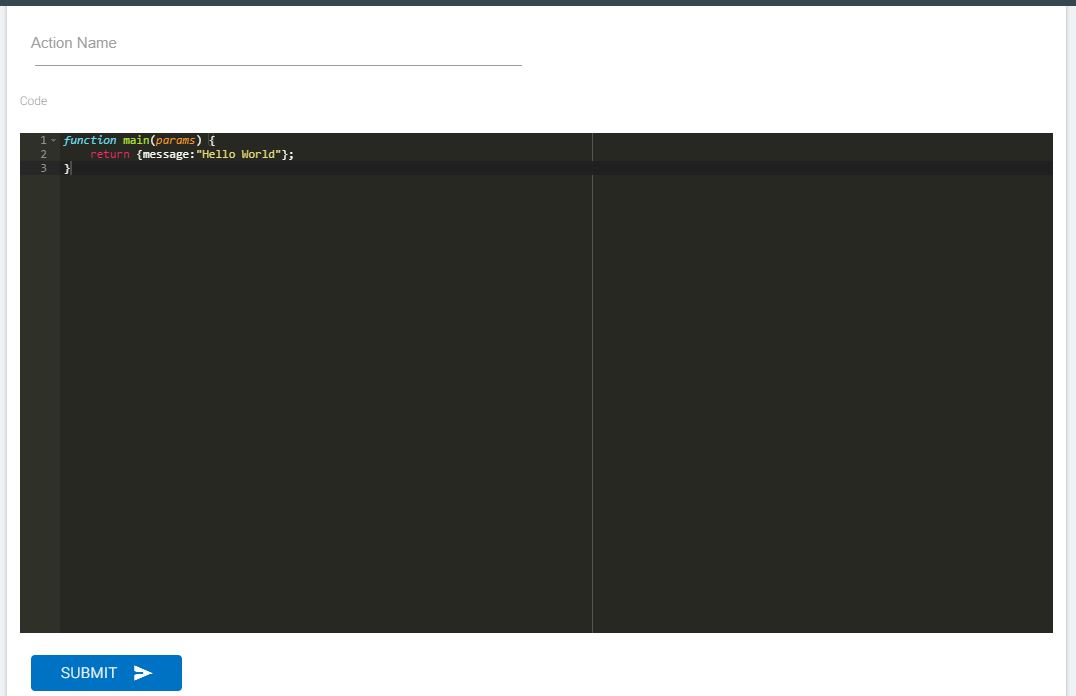 - Click the Submit button to save and create the action in IBM Cloud OpenWhisk space associated with your BigFix AEX Instance.