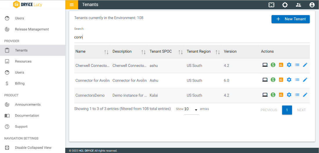 - Log into Global admin and navigate to Tenants page under Provider tab.