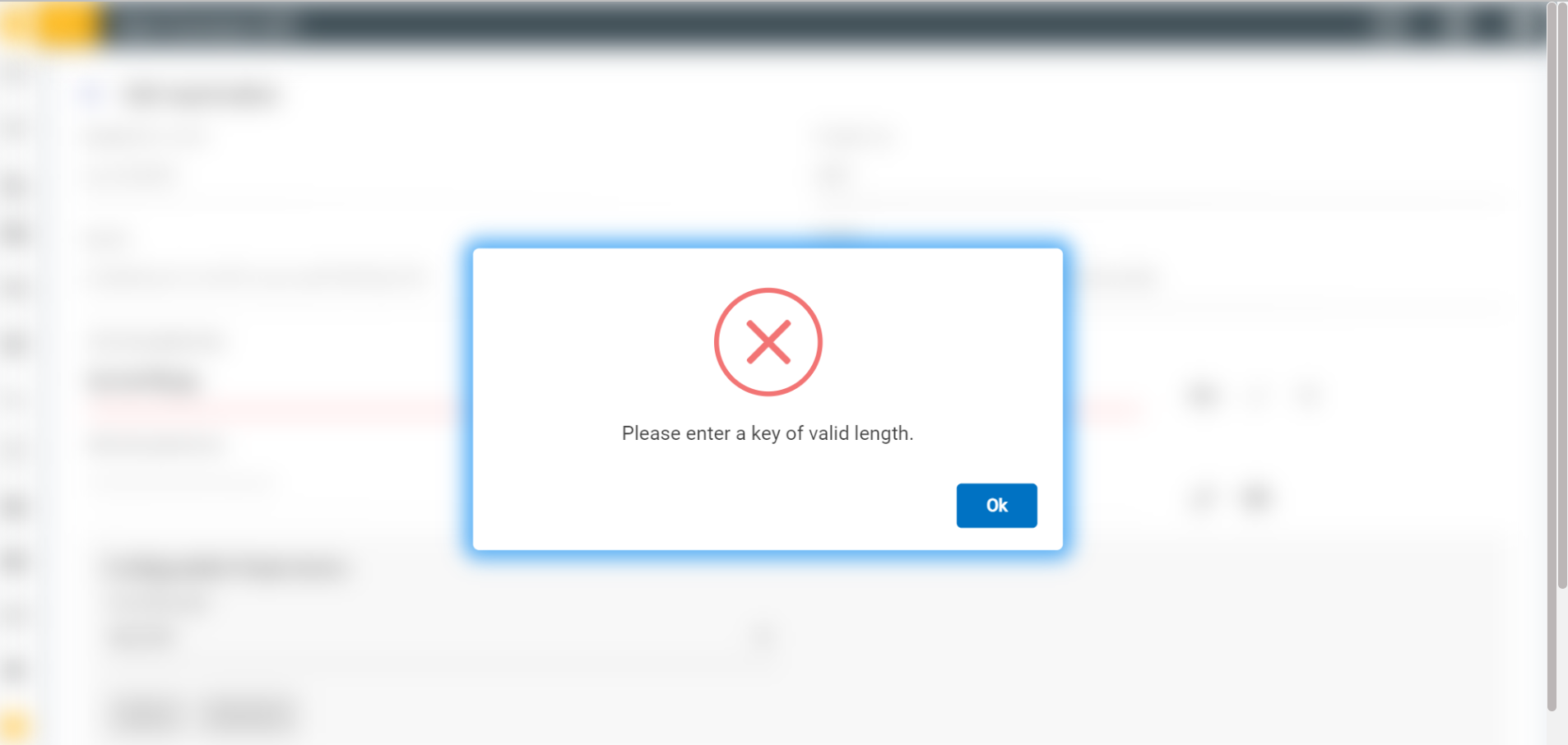 - User can either enter the key manually or can generate a key with Generate key value icon