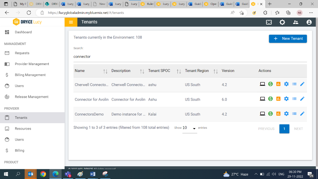 - Log into Global admin and navigate to Tenants page under Provider tab.