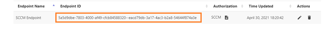 - On the SCCM Connector page, enter the Endpoint ID you copied in step 4 and click on Save so that endpoint is available for the SCCM connector.