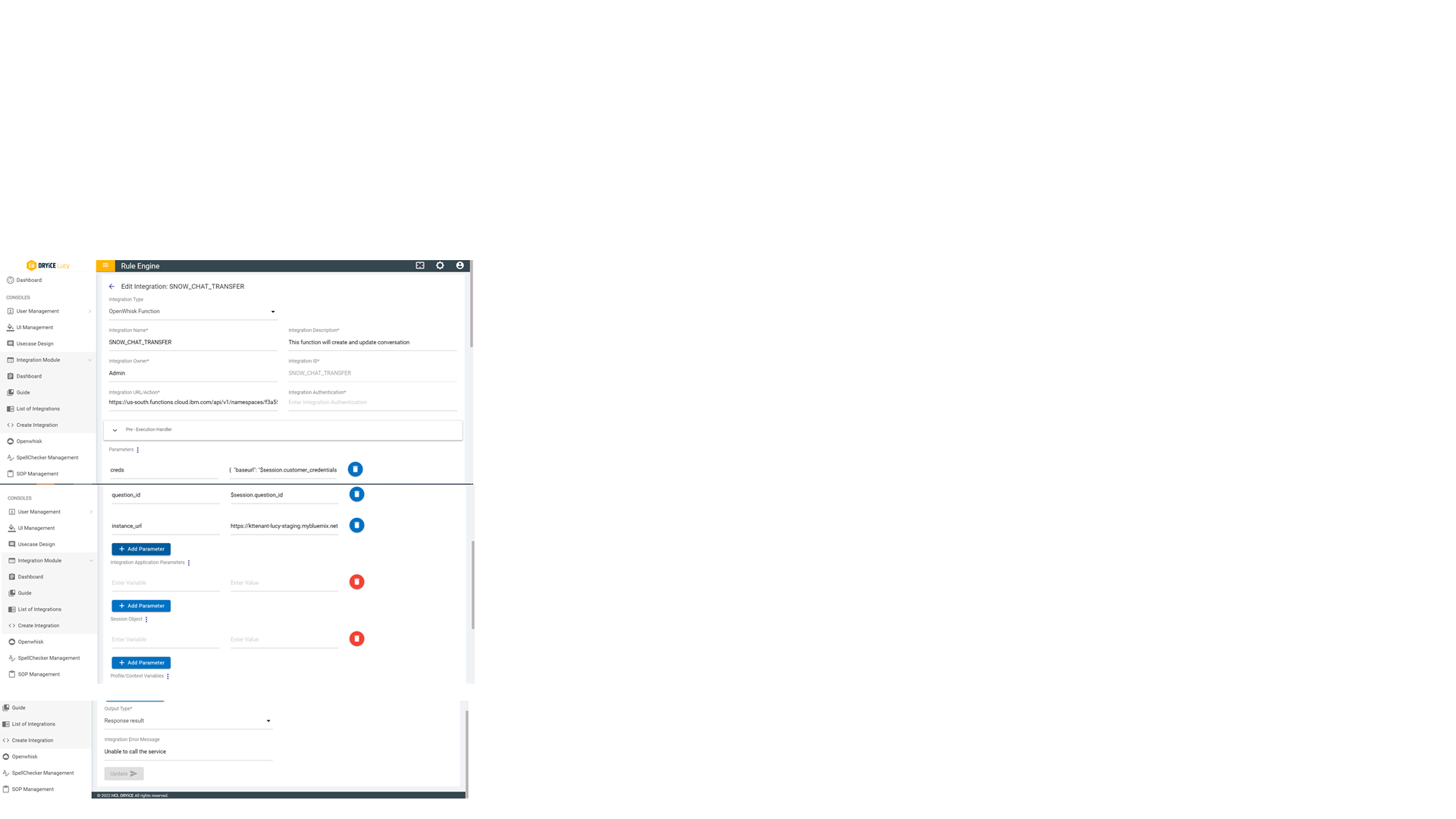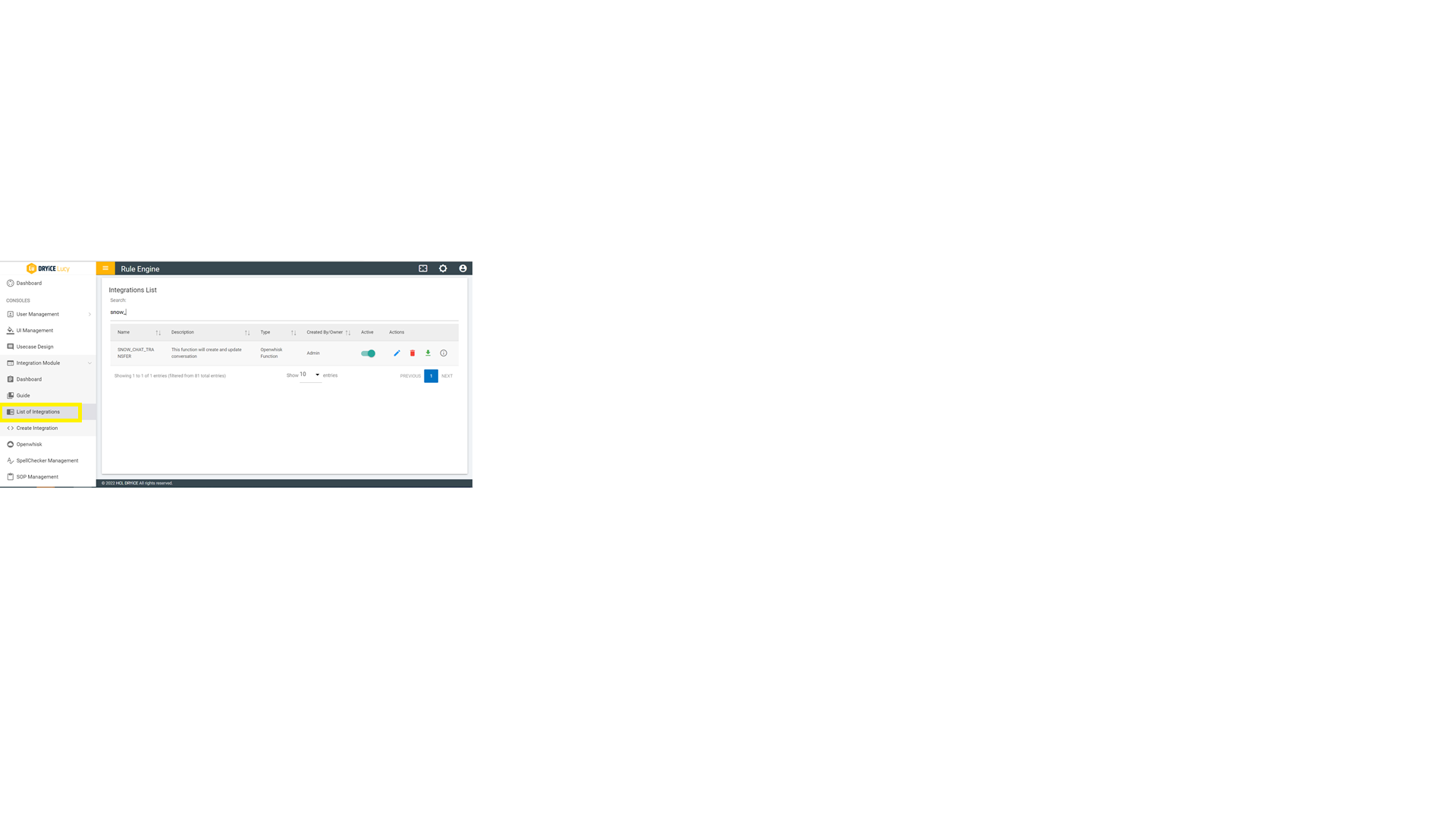 - On searching for rule named “SNOW_CHAT_TRANSFER”, you will see a new rule is created for the ServiceNow seamless chat transfer integration named SNOW_CHAT_TRANSFER.