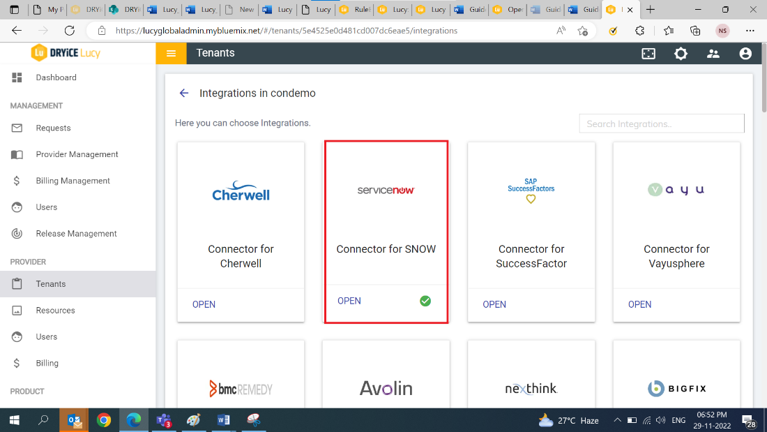 column. - In tenant’s configuration page, click on Open link on “Choose Integrations” card.